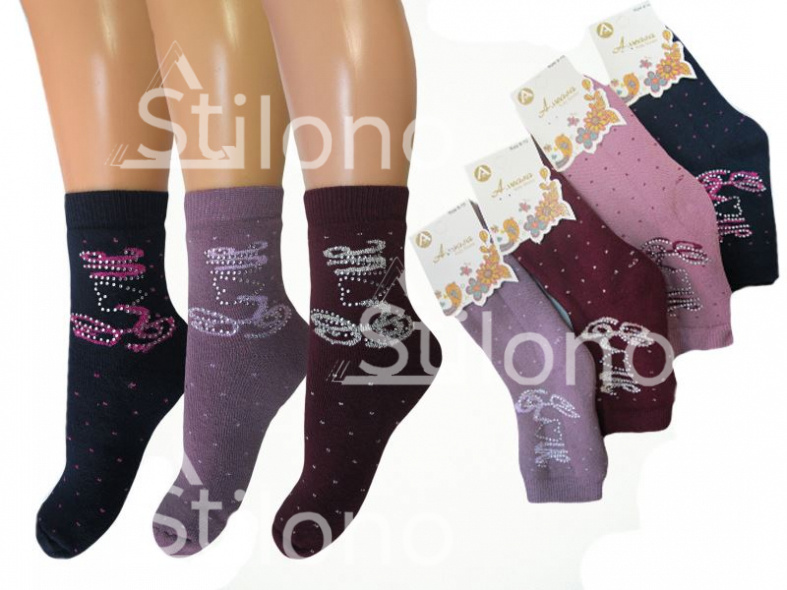 Носки для девочки с рисунком и стразами махровые 1-721 Д